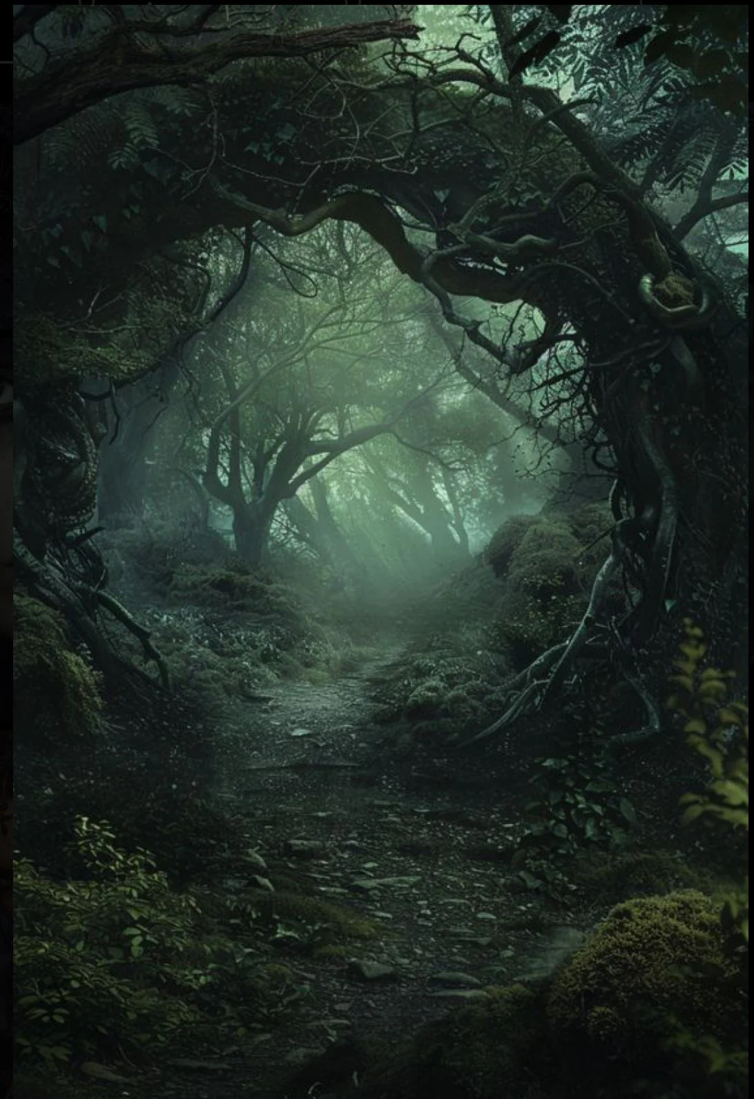Long ago, before the forest had a name, a great hunter followed the trail of a white spirit stag. He crossed sacred lines, ignoring the warnings carved into stone and bark. For his hunger, the balance was broken.